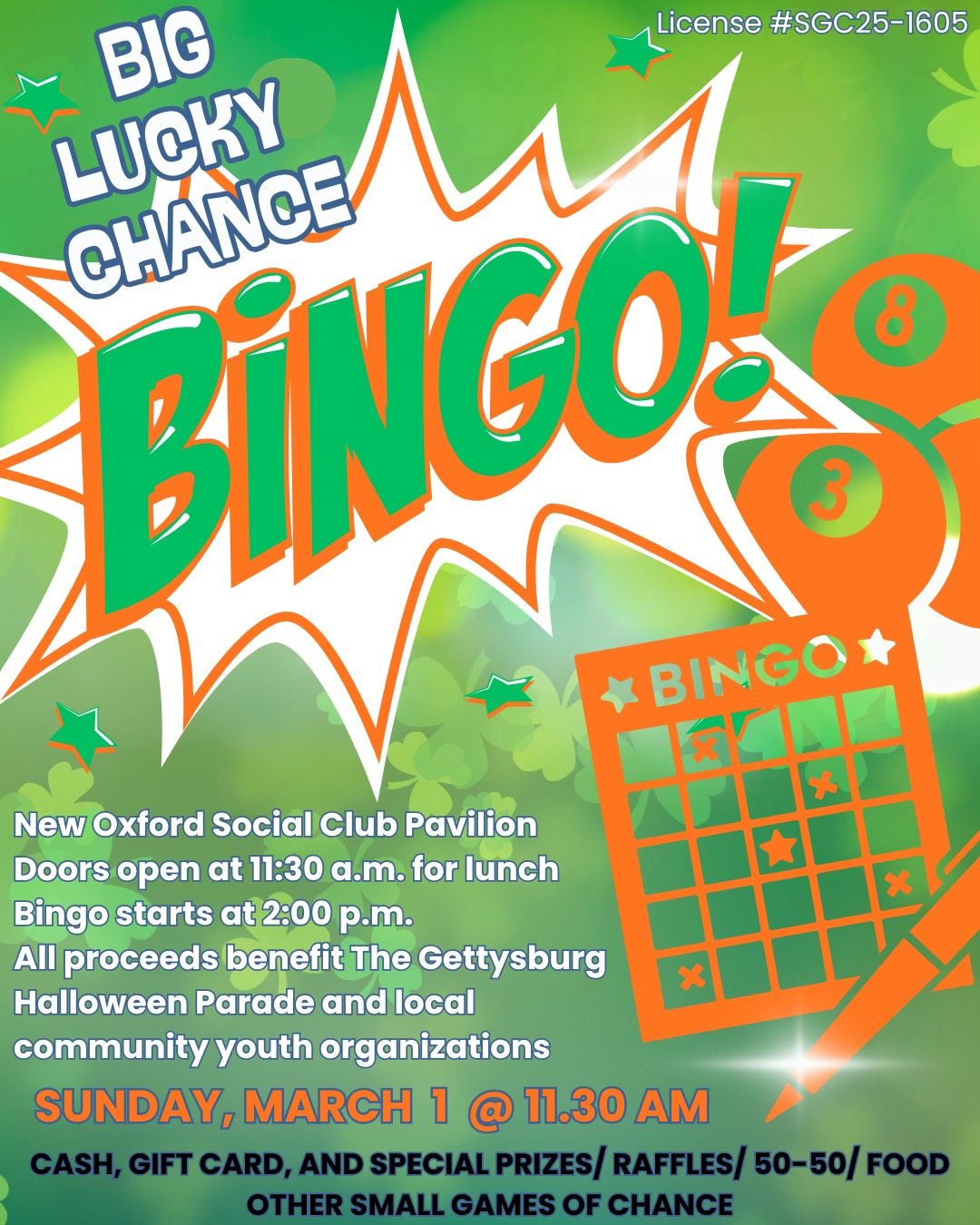 Big Lucky BINGO in Support of the Gettysburg Halloween Parade
