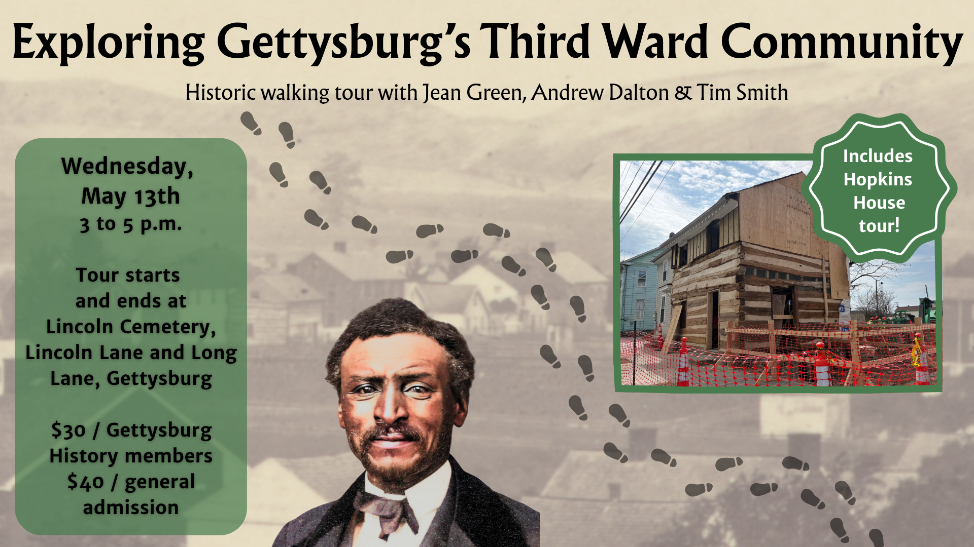 The tour will also include a behind-the-scenes look at the restoration of the Jack and Julia Hopkins House, the future home of Gettysburg’s new Black History Museum. Once the residence of a free Black family whose lives were intertwined with the story of the Underground Railroad and the Battle of Gettysburg, the Hopkins House will soon bring these powerful stories to life for visitors from around the world.
