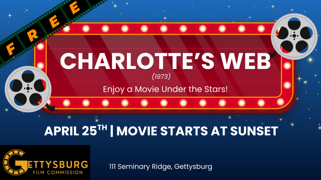 Gettysburg Film Commission will host a free family-friendly movie, Charlotte’s Web (1973 version) outside at Seminary Ridge